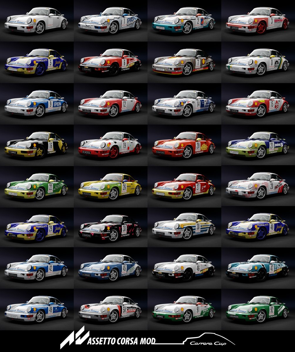- 31 quality skins based from real and historic liveries and sponsors of the awesome 964 French Carrera Cup in 1992